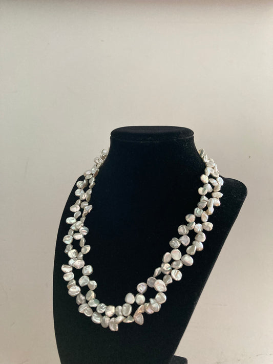 Silver Keshi Pearl Double Strand Necklace