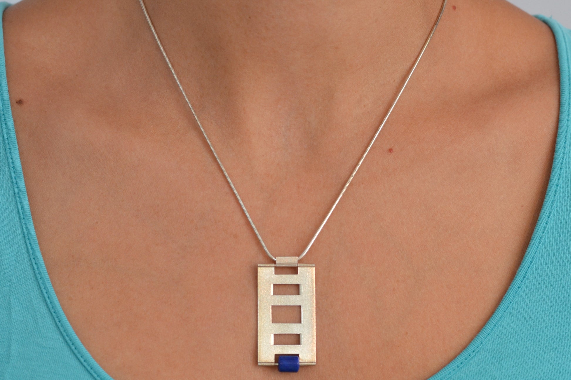 The top bail is hinged, creating a rectangular shape where it pivots, and the rectangular lapis stone spins- It is a little detail hardly noticeable to anyone else, but it is a lovely little piece to quietly spin around.