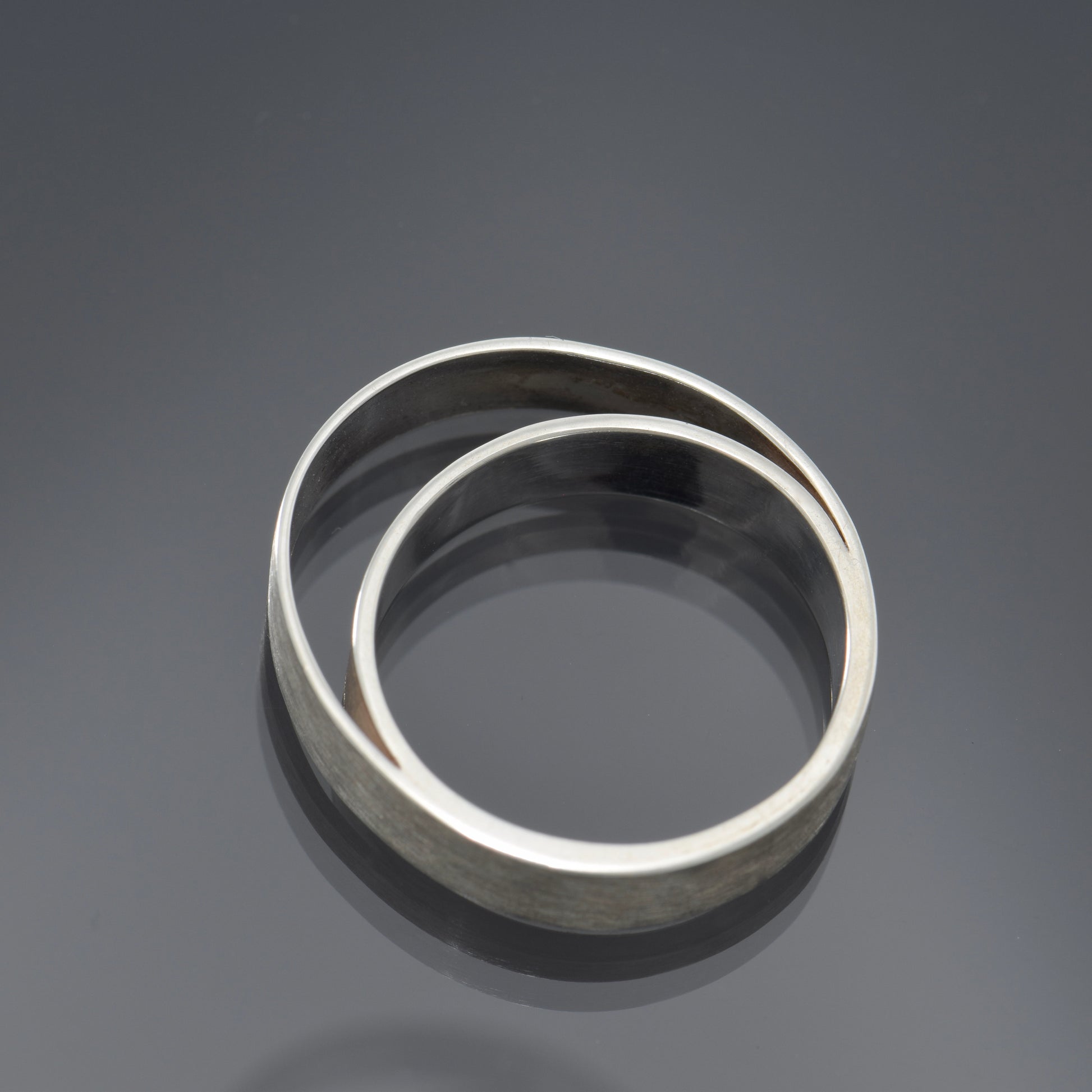 This ring is designed with an elegant arch and features shining silver edges that make it stand out. With its sleek appearance, it will add a touch of sophistication to any outfit.